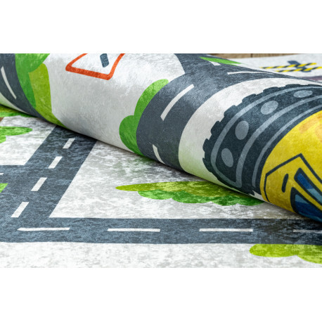 Kab. BAMBINO 2338 covor lavabil Excavator pentru copii antiderapant - alb / verde 120x170 cm