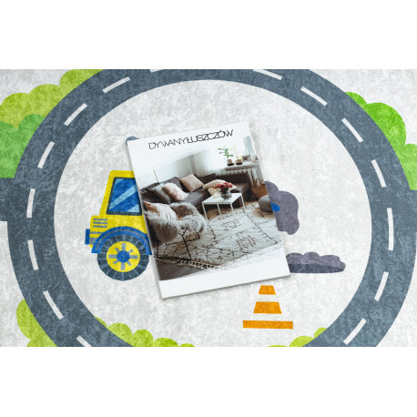 Kab. BAMBINO 2338 covor lavabil Excavator pentru copii antiderapant - alb / verde 160x220 cm