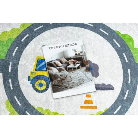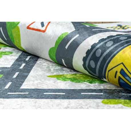 Kab. BAMBINO 2338 covor lavabil Excavator pentru copii antiderapant - alb / verde 200x290 cm