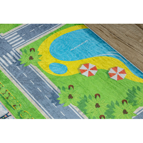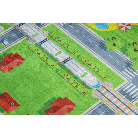 Kab. BAMBINO 2624 covor lavabil City, străzi pentru copii antiderapant - verde / gri 120x170 cm