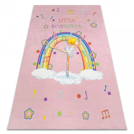 Kab. BAMBINO 41870 covor lavabil Balerina, curcubeu pentru copii antiderapant - roz 200x290 cm