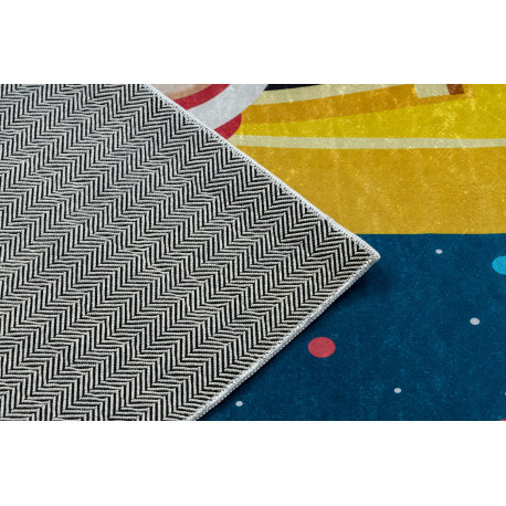 Kab. BAMBINO 42810 covor lavabil Rocket, planete pentru copii antiderapant - albastru / maro 160x220 cm