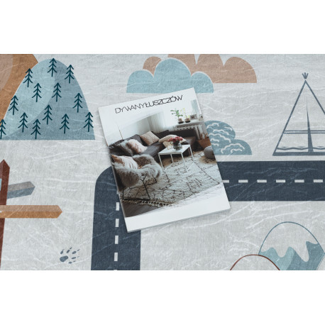 Kab. BAMBINO 46980 covor lavabil Forest pentru copii antiderapant - alb / verde 120x170 cm
