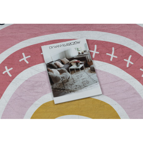Kab. BAMBINO 47810 covor lavabil Rainbow, buline pentru copii antiderapant - alb / roz 140x200 cm