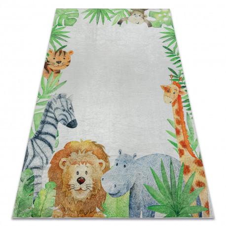 Kab. BAMBINO 54090 covor lavabil Animale, Africa pentru copii antiderapant - alb / verde 140x200 cm