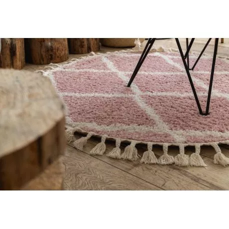 Kab. Covor BERBER TROIK A0010 rotund roz / alb, cu ciucuri, shaggy, rotund, 160 cm