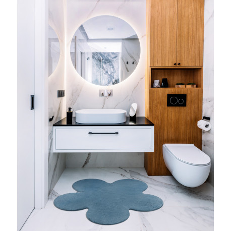 Kab. Covor modern lavabil SHAPE 3106 Flower shaggy - pluș albastru, antiderapant 80x80 cm