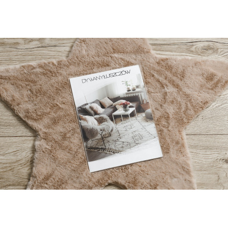 Kab. Covor modern lavabil SHAPE 3148 Star shaggy - pluș bej, antiderapant 80x80 cm