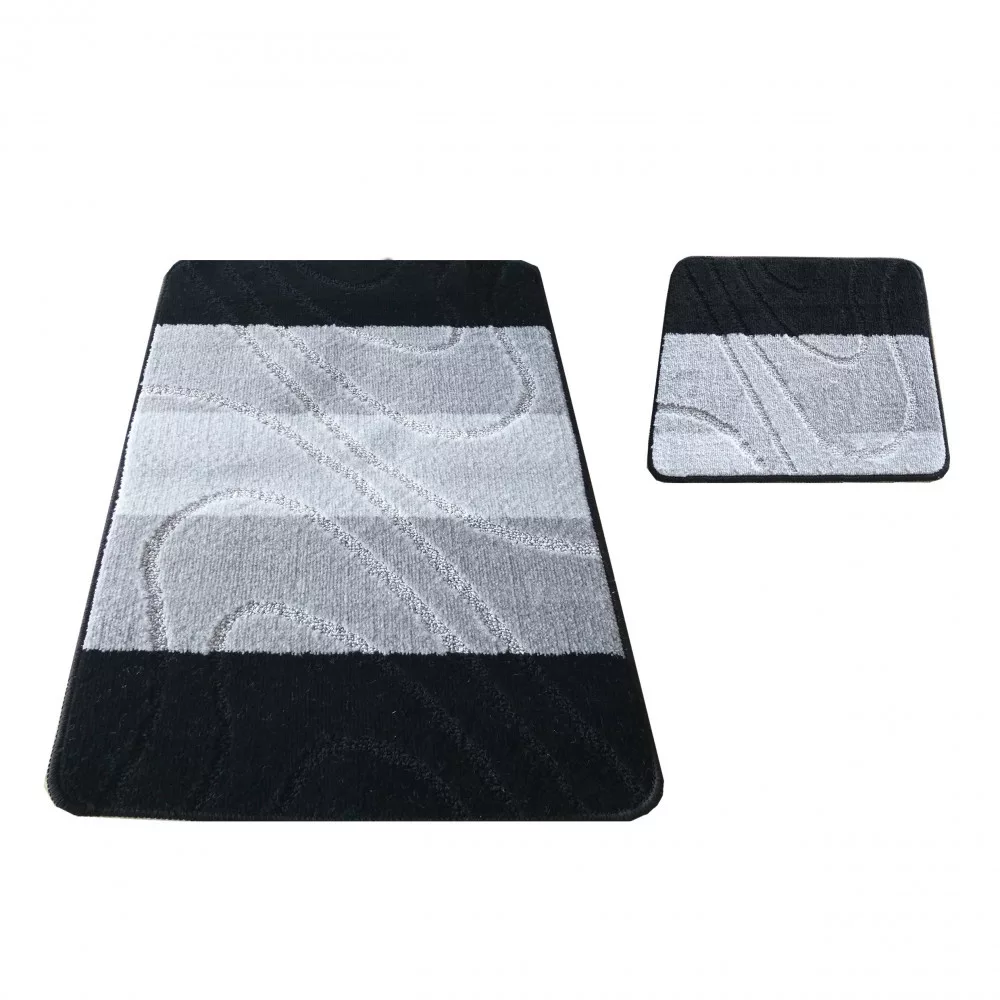 Set baie 2 piese Montana 05 negru (50 cm x 80 cm și 40 cm x 50 cm) covor