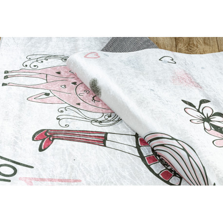 Kab. BAMBINO 2644 covor lavabil Fetiță, unicorn pentru copii antiderapant - alb / roz 120x170 cm